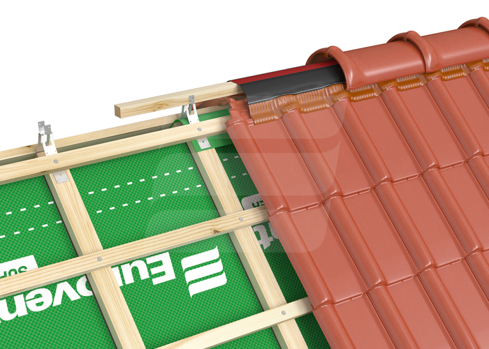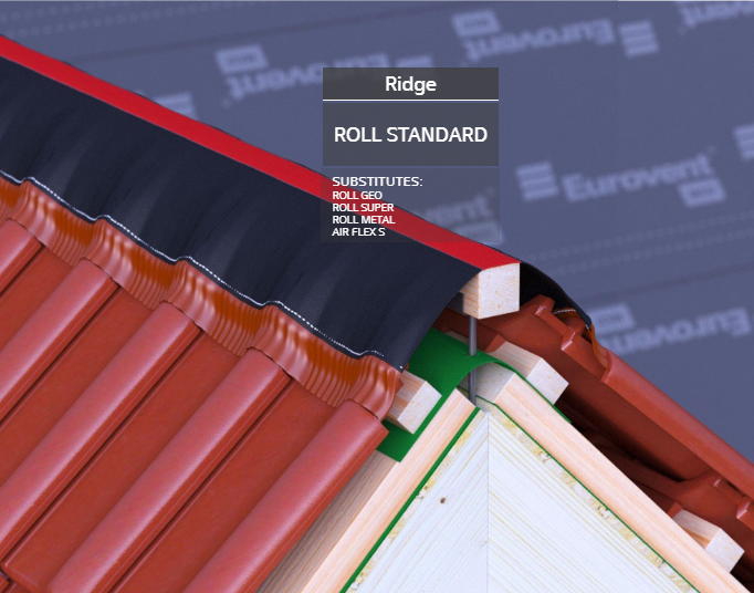 Применяется как вентиляционно-уплотнительный элемент для горизонтальных и косых коньков. Защищает склон крыши от надувания снега снизу конька, дождя, влаги, пыли и грязи а также обеспечивает вентиляцию со стороны теплоизоляции. Подходит для практически всех видов кровельных покрытий, как керамическая черепица, бетонная черепица, металлочерепица, трапециевидные листы, профилированные алюминиевые листы и т.п.