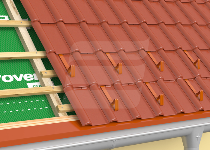 Используется в скатных кровлях как элемент разрушающий снег, разрушитель снега - снегорез. Монтируется на отдельные черепицы с помощью специально профилированного окончания. Благодаря его применению большое количество листьев или снега, падающее со склона кровли распадается на меньше части и не угрожает лицам находящимся вблизи здания.