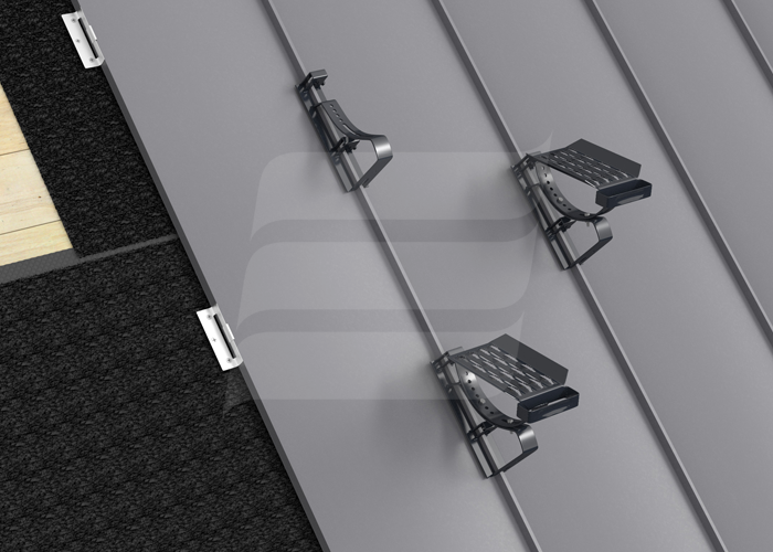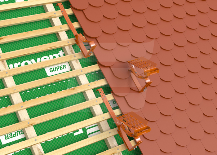 Кровельная ступень изготовлена из оцинкованной стали. Используется как элемент для безопасного перемещения в области кровли с наклоном от 15˚ дo 60˚. Обладает антискользящими отверстиями на всей поверхности, монтируется на кровле вместе с креплением. Доступен оцинкованный вариант и несколько цветовых вариантов окрашенных порошковой краской по цветной палитре RAL.